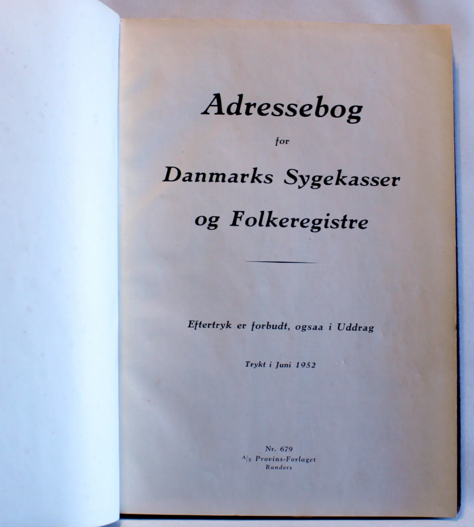 En historiske publikationer, der indeholdt fortegnelser over kommunale folkeregistre og sygekasser. Trykt juni 1952. 157 sider. Pæn stand.